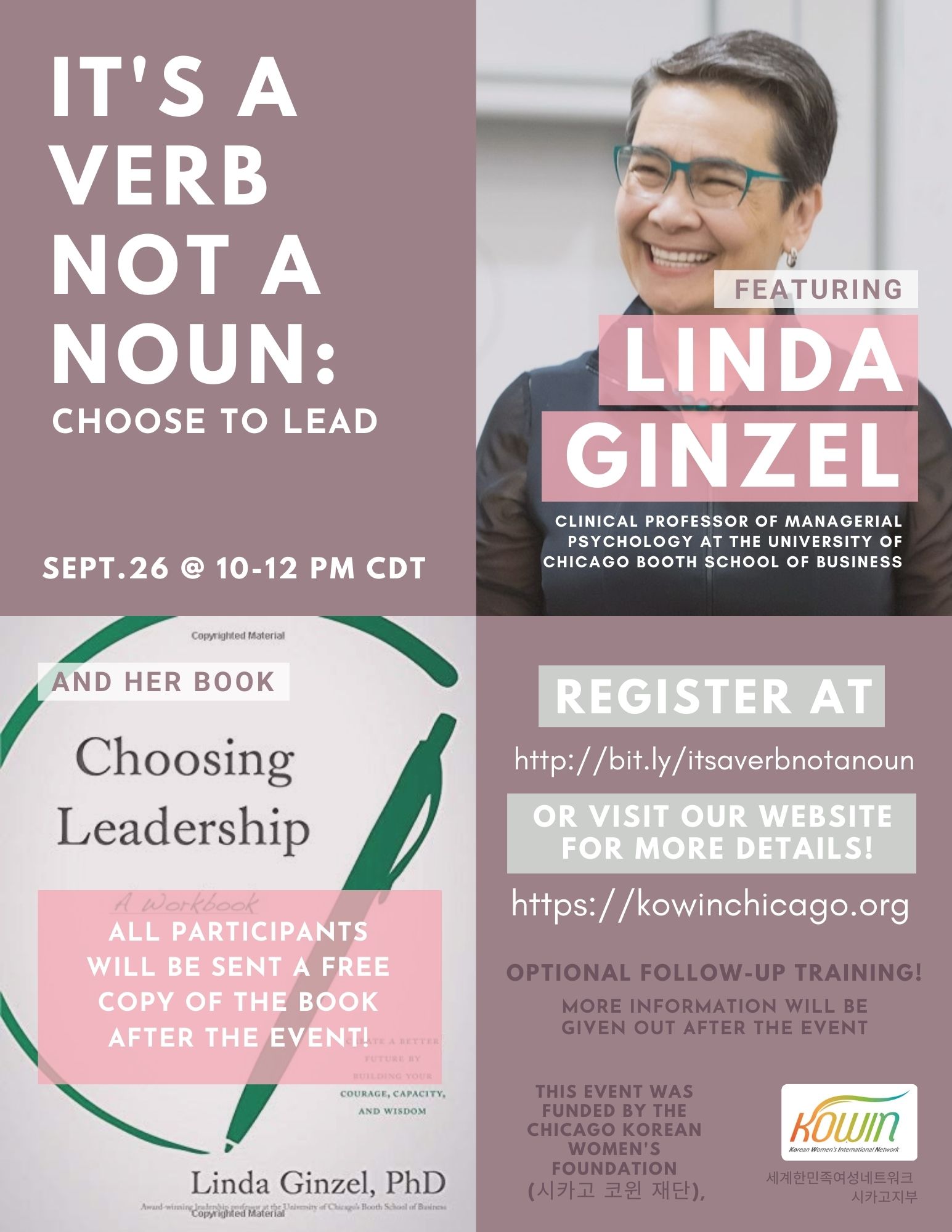 - September 26: “It’s A Verb, Not A Noun: Choose to Lead” Virtual Leadership Seminar with Professor Linda Ginzel from the University of Chicago Booth School of Business