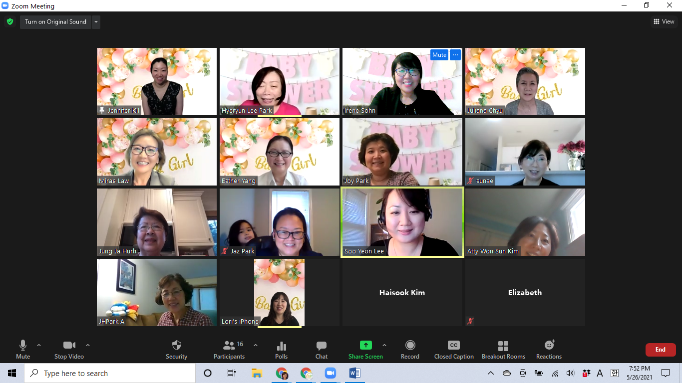 - May 28: Virtual Baby Shower for Jennifer Kil