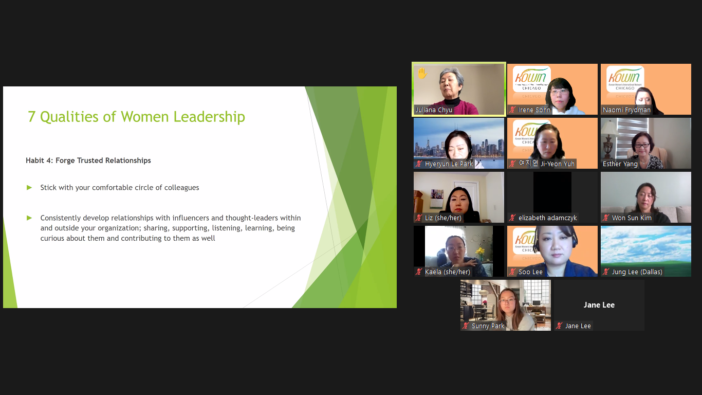 And special thanks to Jane H. Park, who has served as the 11th KOWIN US Eastern Region Focal Point for the past two years. Thank you so much for your amazing leadership!