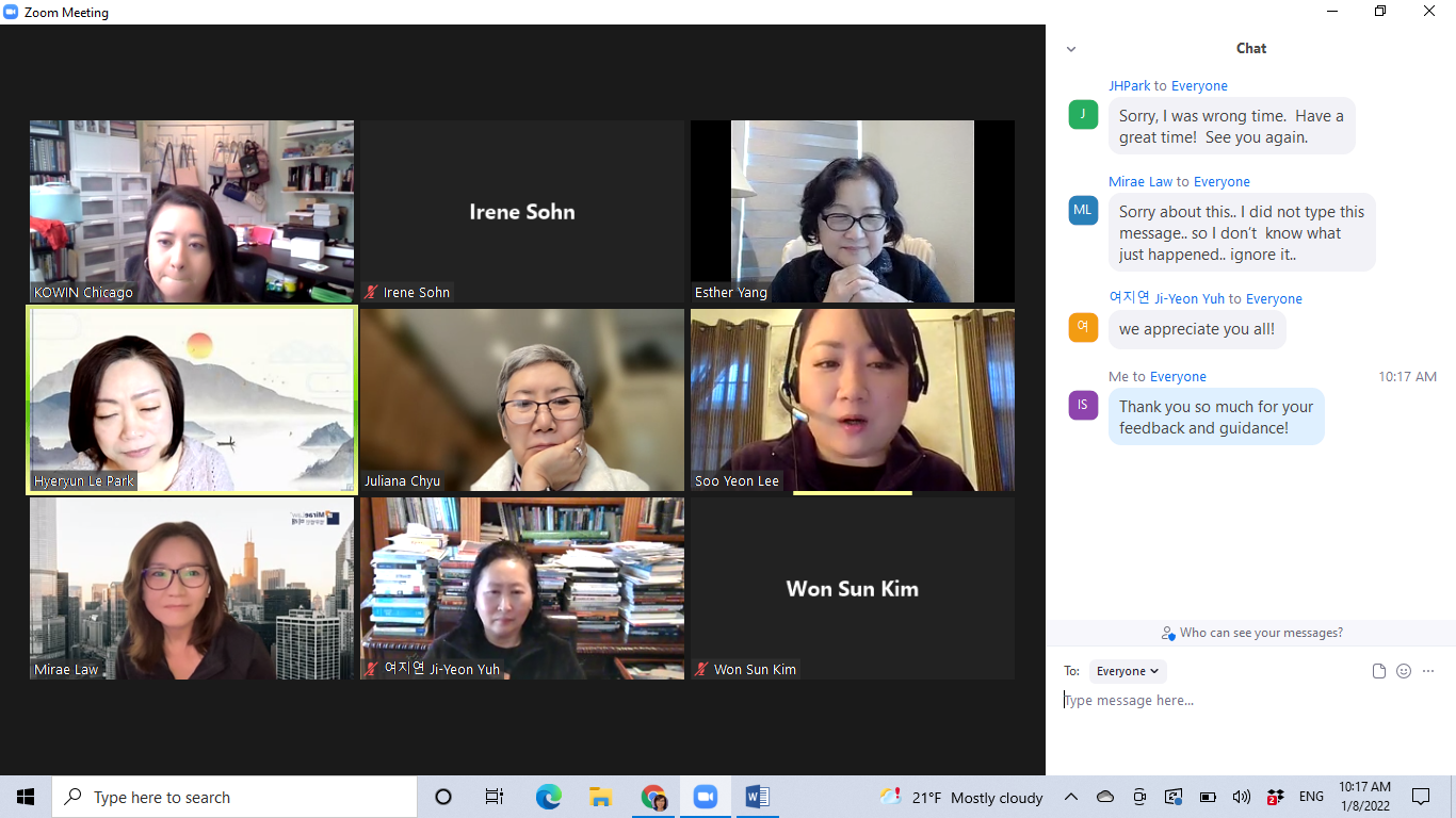 January 27: KOWIN January Meeting. Welcoming new member, Ansuk Jeong.