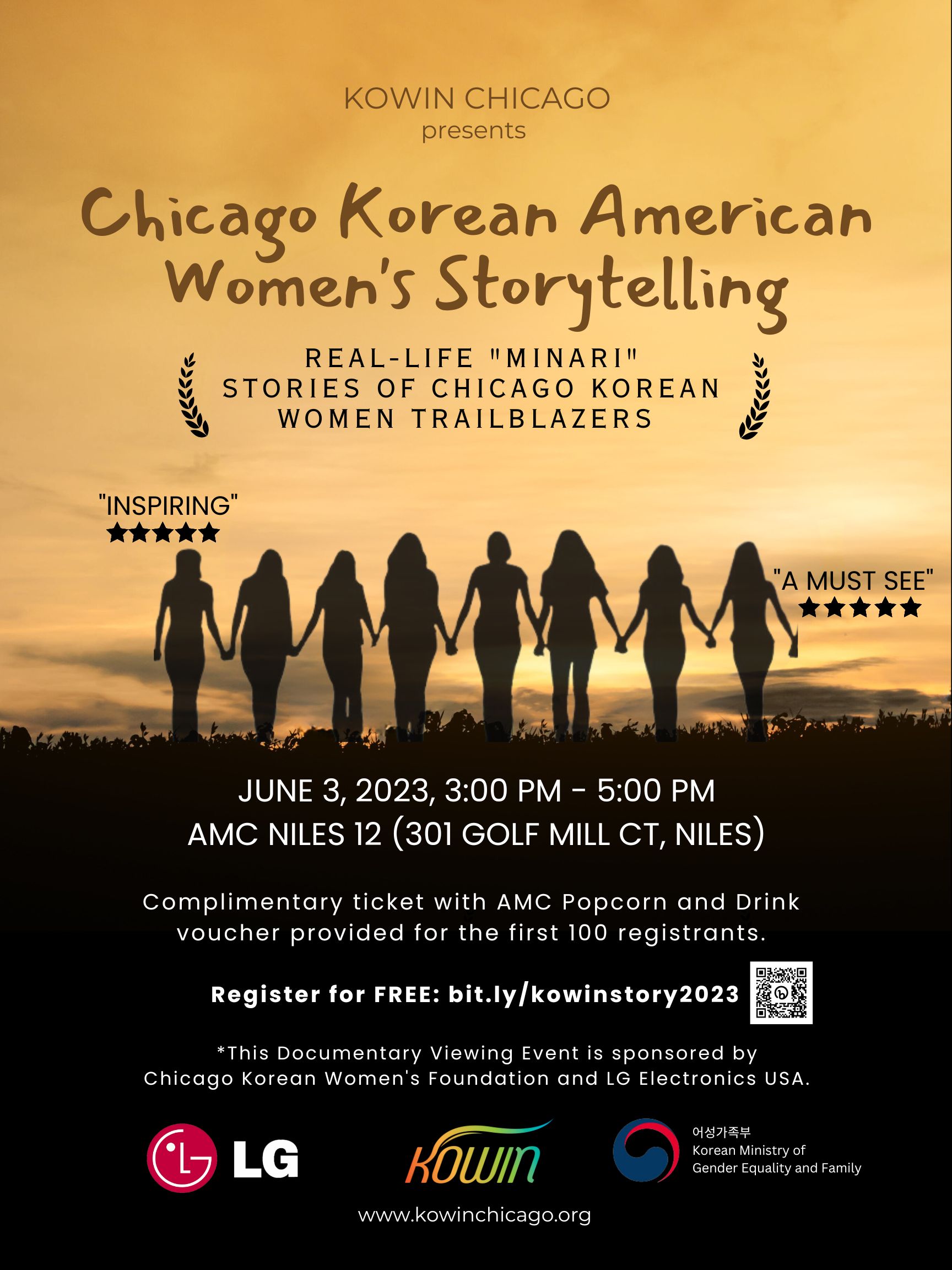 KOWIN Chicago Chapter released its 2nd video documentary project “Chicago Korean American Women Storytelling,” which was created to record the footsteps of 10 Korean women who have embarked upon a page of the early immigration history of Chicago. We were sp happy to bring it back on the big screen after a successful premiere event in June 2022. Tickets were sold out for both viewing events!