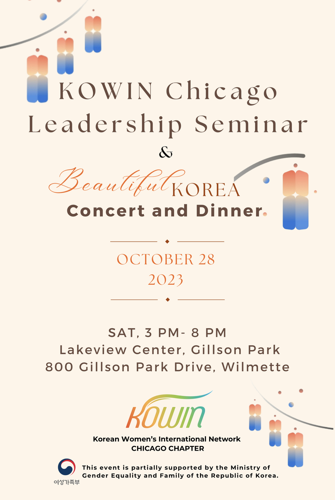 October 28: 2023 KOWIN Chicago Leadership Seminar & Beautiful Korea Concert and Dinner at Lakeview Center, Gilson Park, Wilmette