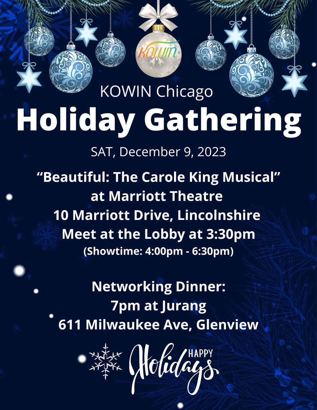December 9: KOWIN Chicago 2023 Holiday Gathering – Musical “Carole: The Beautiful” & Networking Dinner