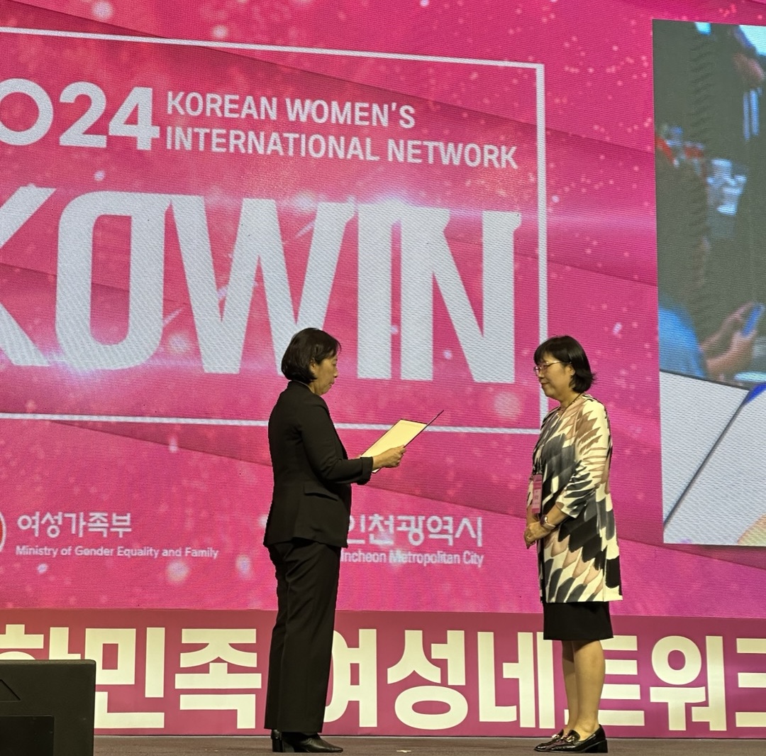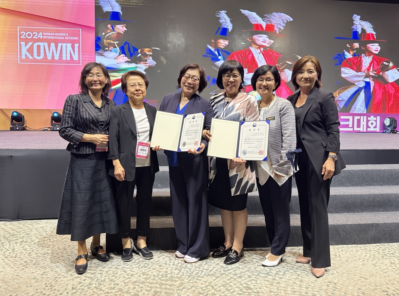 We are thrilled to share that two of our esteemed members, along with Dr. Nam from the Washington D.C. Chapter, were honored for their exceptional service and dedication at the KOWIN conference held earlier this month in Incheon, Korea. Irene, our President, and Hyeryun Lee Park, our First VP, were recognized by the Korean Ministry of Gender Equality and Family for their tireless contributions to KOWIN.